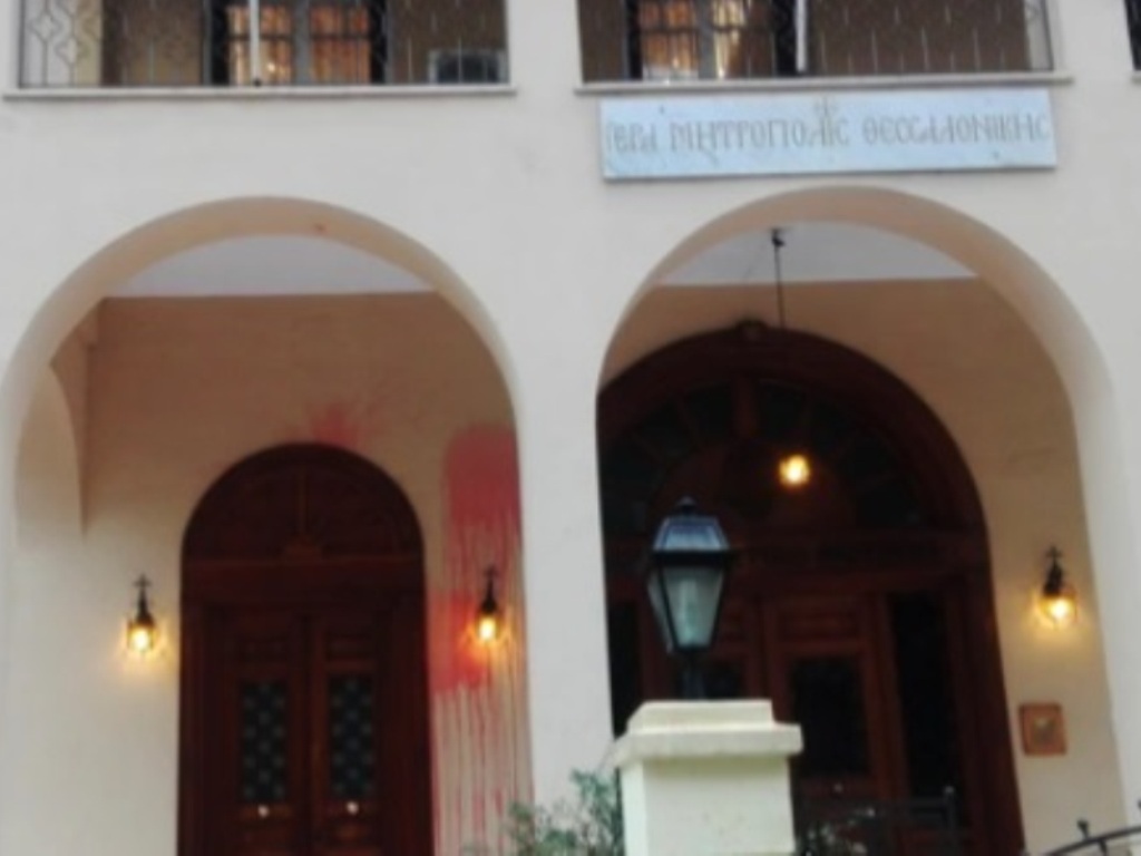 Μπογιές και τρικάκια πέταξε ομάδα ατόμων στο προαύλιο της Μητρόπολης Θεσσαλονίκης, στο ιστορικό κέντρο της πόλης.