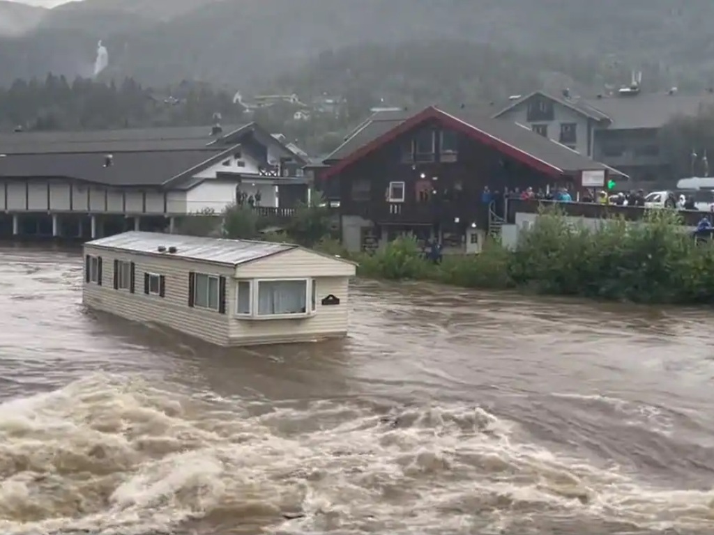 A mobile home in Norway was washed away in severe flooding as Storm Hans battered parts of Scandinavia and the Baltics for several days. pic.twitter.com/hwc6btz6u7
