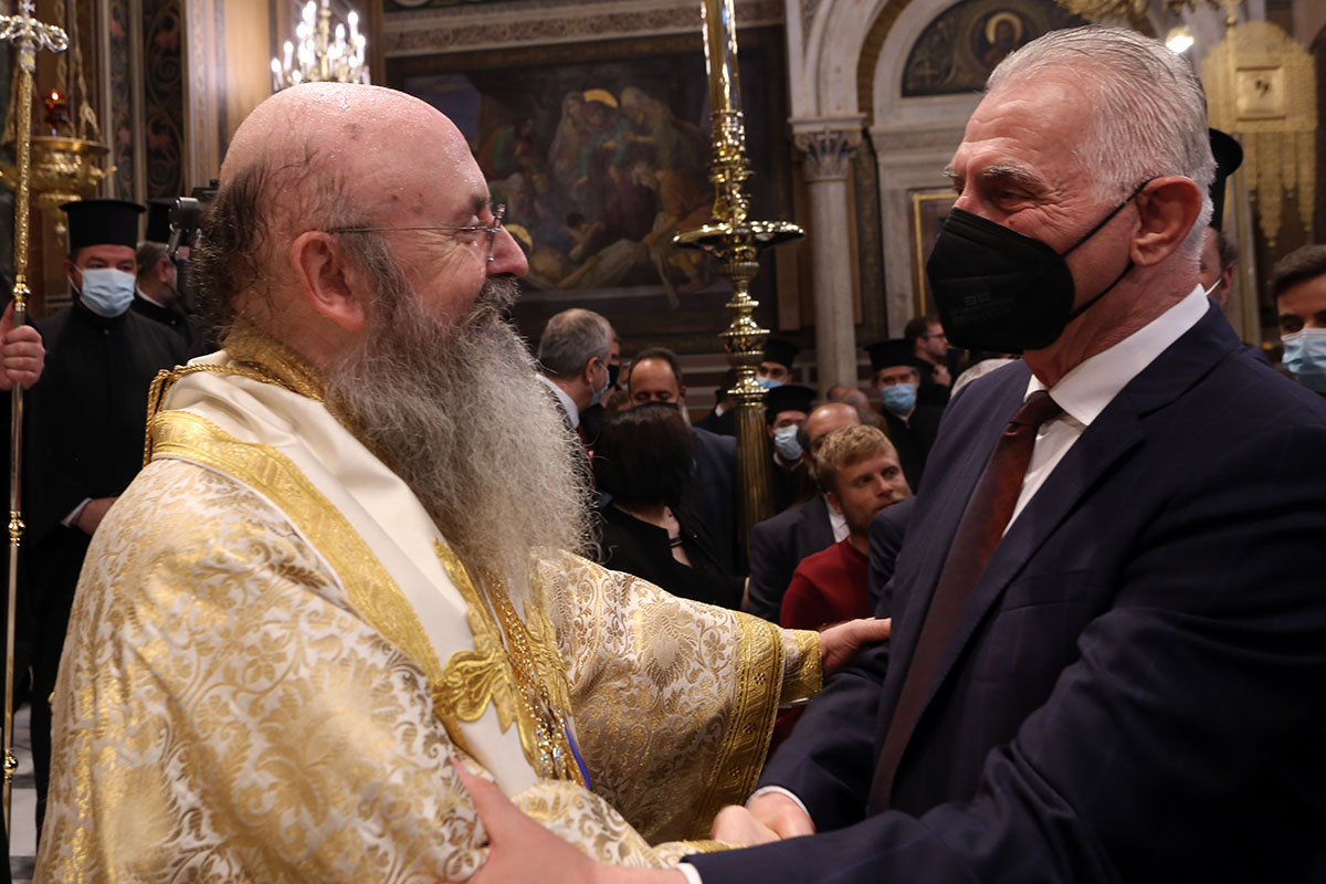 Τον Αρχιεπίσκοπο πλαισίωσαν οι μητροπολίτες Δημητριάδος και Αλμυρού Ιγνάτιος, Μεσογαίας και Λαυρεωτικής Νικόλαος, Μεσσηνίας Χρυσόστομος, Ιλίου, Αχαρνών και Πετρουπόλεως Αθηναγόρας, Κίτρους, Κατερίνης και Πλαταμώνος Γεώργιος, Φθιώτιδος Συμεών. Παρών και ο μητροπολίτης Δωδώνης Χρυσόστομος.