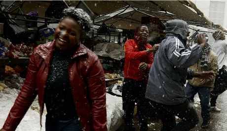 Με κινητά τηλέφωνα ανά χείρας οι κάτοικοι στη Νότια Αφρική για να απαθανατίσουν το χιόνι που έπεφτε, ανοίγοντας μάλιστα τα στόματά τους για να γευτούν το χιόνι.