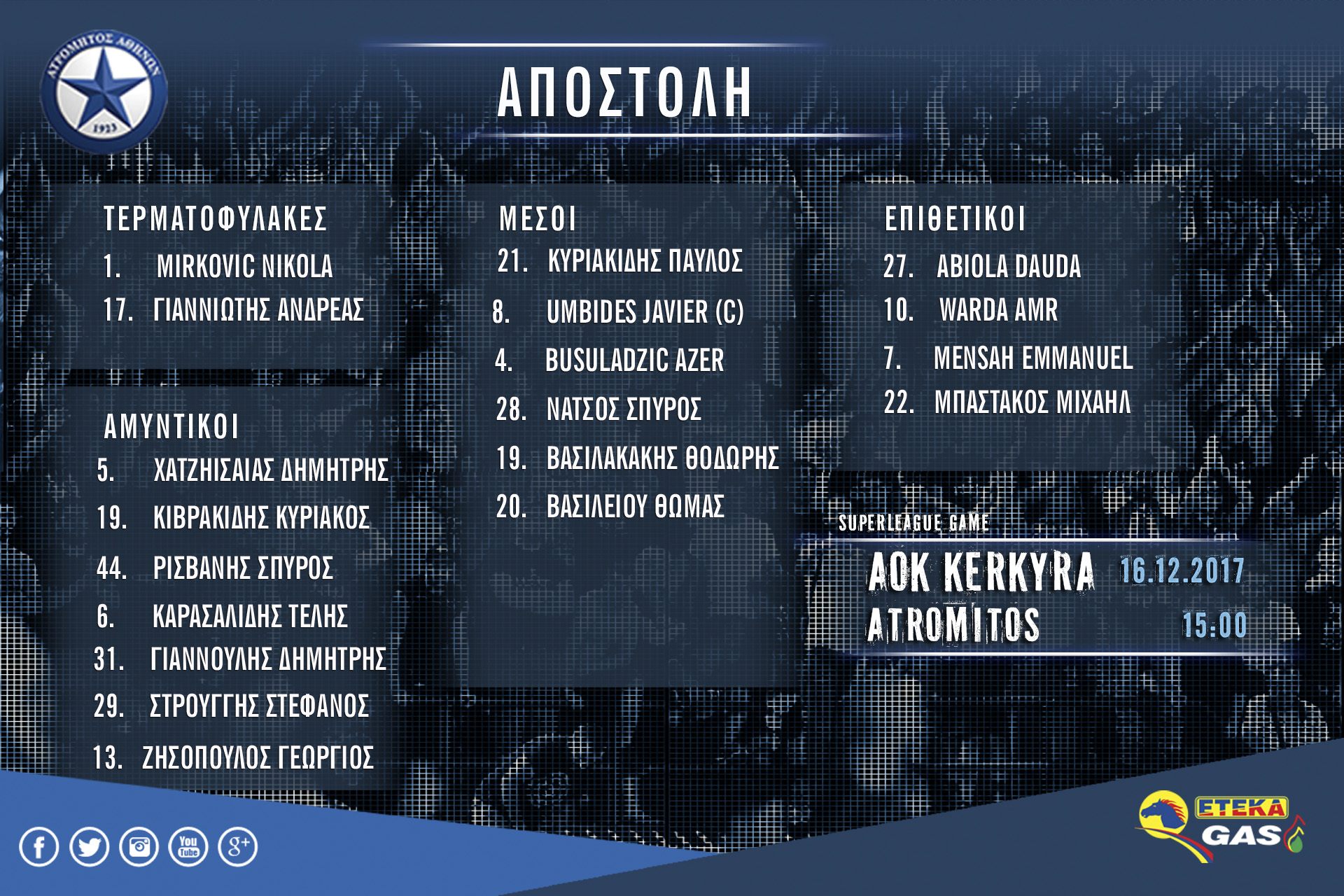 Χωρίς Μάντσον και Ντιγκινί στην Κέρκυρα ο Ατρόμητος