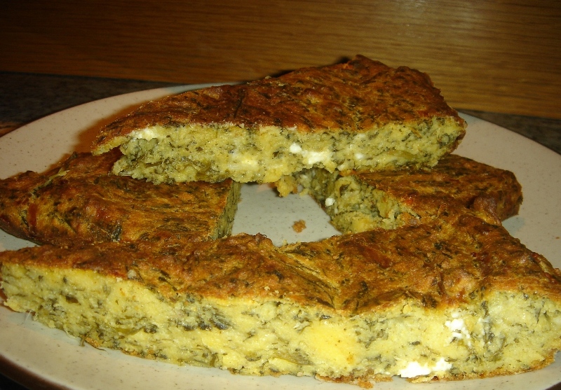 Ψήνουμε στο πάνω κάτω ή στον αέρα για ¾ και αφού ροδοκοκκινίσει είναι έτοιμη. Τρώγεται με γιαούρτι στραγγιστό.