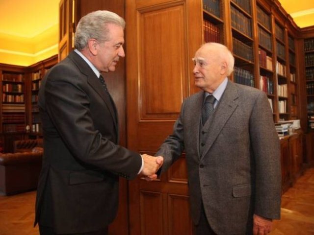 Ο κ. Αβραμόπουλος επισκέφθηκε στο Προεδρικό Μέγαρο τον Κάρολο Παπούλια «στο παρά πέντε της αποχώρησής» του όπως είπε προκειμένου να τον ευχαριστήσει για τον ρόλο του τα τελευταία χρόνια.