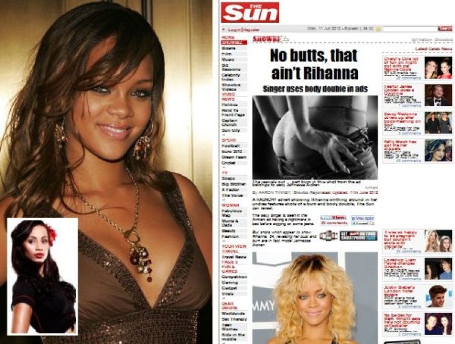 Η εφημερίδα μετά από αυτό πέρασε στην αντεπίθεση με την τελευταία να αποκαλύπτει πως οι λαχταριστοί γλουτοί και στήθος που μας έδειξε η Ριάνα στην τελευταία διαφήμιση του Armani, ανήκουν στην Ιρλανδέζα μοντέλο Τζαχνάσα Άικεν.