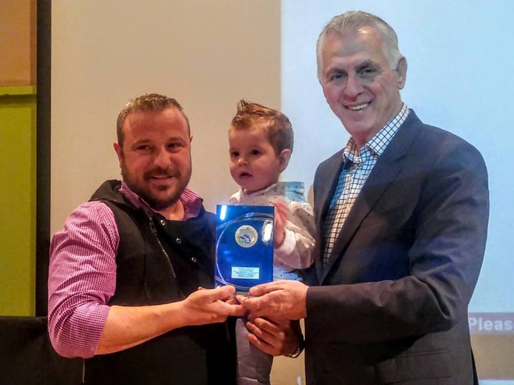 Ο πρόεδρος του Συλλόγου Χρήστος Βασιλόπουλος απονέμει τιμητική πλακέτα στον Πάνο Βελέντζα, προπονητή του αγωνιστικού τμήματος, για την συμμετοχή του στους Ολυμπιακούς Αγώνες του Ρίο