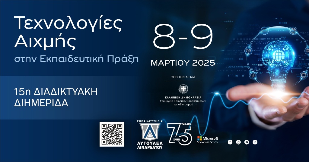 Το Σάββατο 8 και την Κυριακή 9 Μαρτίου, τα Εκπαιδευτήρια Αυγουλέα-Λιναρδάτου διοργανώνουν, υπό την αιγίδα του Υπουργείου Παιδείας, Θρησκευμάτων & Αθλητισμού, τη 15η διημερίδα με τίτλο «Τεχνολογίες Αιχμής στην Εκπαιδευτική Πράξη». Η διοργάνωση, που θα πραγματοποιηθεί εξ ολοκλήρου διαδικτυακά, έχει ως αντικείμενο την αξιοποίηση της τεχνολογίας στην εκπαιδευτική διαδικασία.