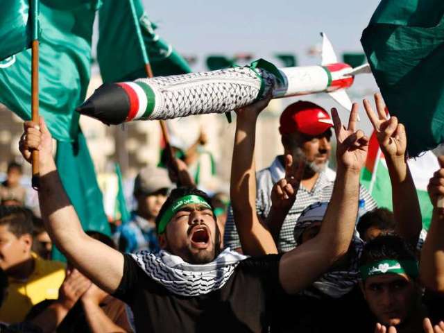 Οι διαδηλωτές φώναζαν συνθήματα όπως «θάνατος στο Ισραήλ» και προέτρεπαν την παλαιστινιακή οργάνωση να εντείνει τις επιθέσεις με πυραύλους κατά ισραηλινών πόλεων.
