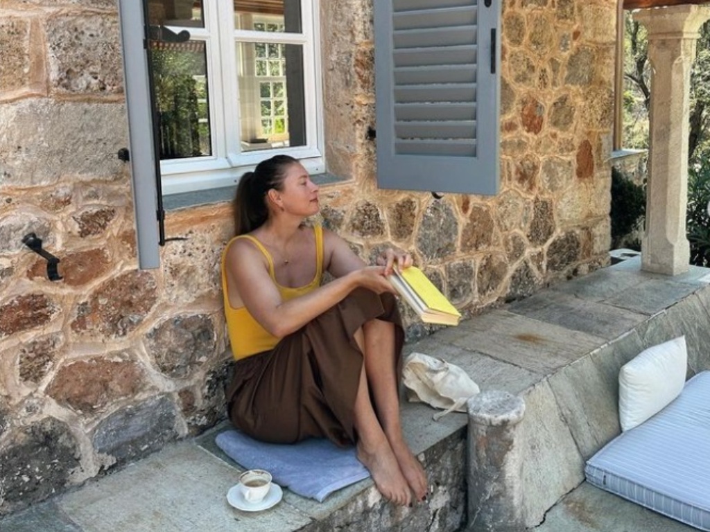 «Μαζεύοντας τις τελευταίες καλοκαιρινές ακτίνες στην Ελλάδα. Στην τελευταία φωτογραφία πάντα στο καθήκον ως μαμά, ακόμα και μέσα στις σπηλιές και με χαμηλή μπαταρία».