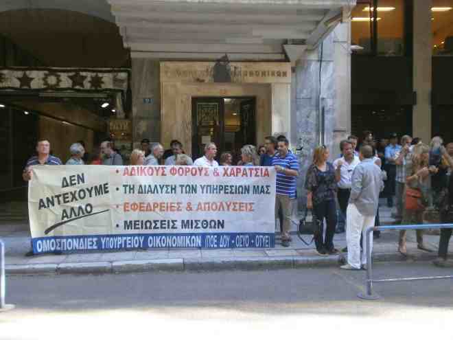 Συγκέντρωση διαμαρτυρίας έξω από το υπουργείο Οικονομικών επί της οδού Καραγιώργη Σερβίας πραγματοποιούν από τις 7 το πρωί εφοριακοί.