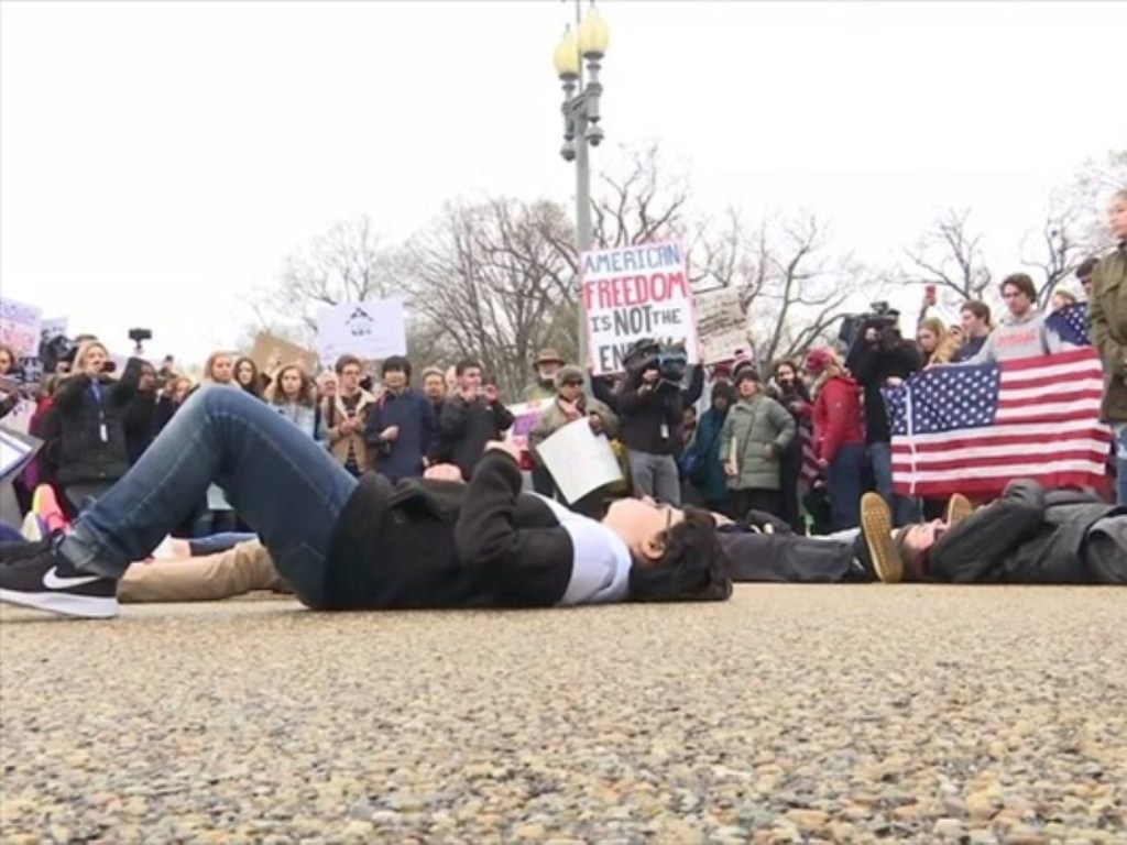 Στη διάρκεια της κινητοποίησης, 17 μαθητές ξάπλωσαν στο οδόστρωμα για 3 λεπτά μπροστά από τον Λευκό Οίκο συμβολίζοντας τα 17 θύματα του μακελειού στη Φλόριντα.