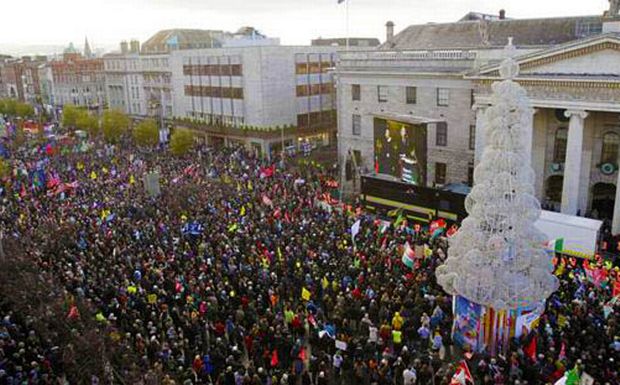 Χθές από 50.000 έως 150.000 Ιρλανδοί διαδήλωσαν στο κέντρο του Δουβλίνου κατά του προγράμματος λιτότητας της κυβέρνησης.