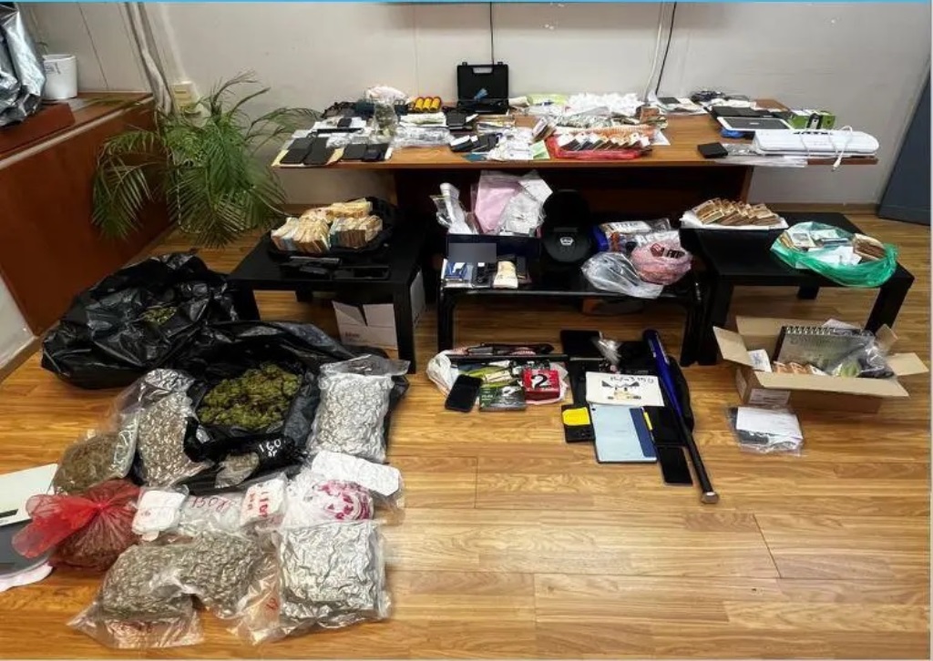 Εντοπίστηκε εργαστήριο καλλιέργειας υδροπονικής κάνναβης (λάμπες κ.λπ.), ενώ κατασχέθηκαν, μεταξύ άλλων, περισσότερα από 9 κιλά κάνναβης και 1 κιλό κοκαΐνης, ρολόι μεγάλης χρηματικής αξίας, πιστόλια και μαχαίρια.