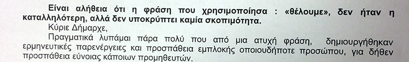 Μάλιστα ο εργαζόμενος Β.Α. αναφέρει ότι η φράση που χρησιμοποίησε «θέλουμε» δεν ήταν η καταλληλότερη αλλά δεν υποκρύπτει καμία σκοπιμότητα.
