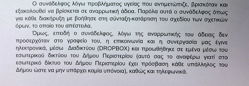 Σύμφωνα με τις επιστολές χρησιμοποιήθηκαν τόσο το γνωστό σε όλους Dropbox αλλά και πλατφόρμα του Δήμου Περιστερίου, η οποία είναι προσβάσιμη σε όλους τους εργαζόμενους της υπηρεσίας.