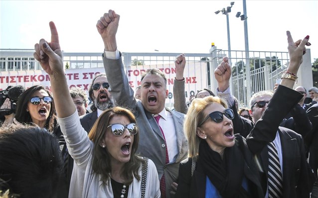 Οι δικηγόροι με πανό και συνθήματα απαίτησαν την απόσυρση του προσχεδίου, το οποίο -όπως ανέφεραν- οδηγεί στην επαγγελματική και οικονομική εξόντωση της πλειονότητας του δικηγορικού σώματος.