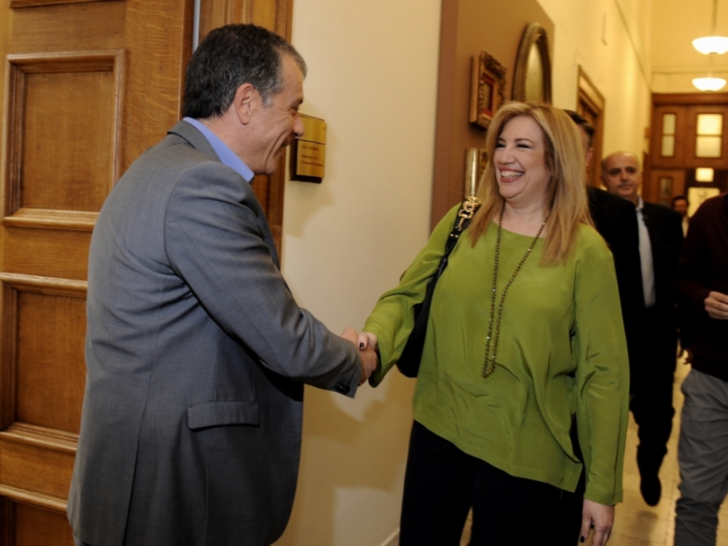 Ως το πρώτο βήμα στη προσπάθεια δημιουργίας ρεύματος που θα σταθεί ενάντια σε Ν.Δ. και ΣΥΡΙΖΑ χαρακτήρισε η πρόεδρος του ΠΑΣΟΚ Φώφη Γεννηματά τη συνάντηση με τον επικεφαλής του Ποταμιού Σταύρο Θεοδωράκη, ο οποίος απ’ την πλευρά του δήλωσε ότι θα δημιουργηθεί επιτροπή θέσεων που σε δύο μήνες θα υποβάλλει τα συμπεράσματά της.