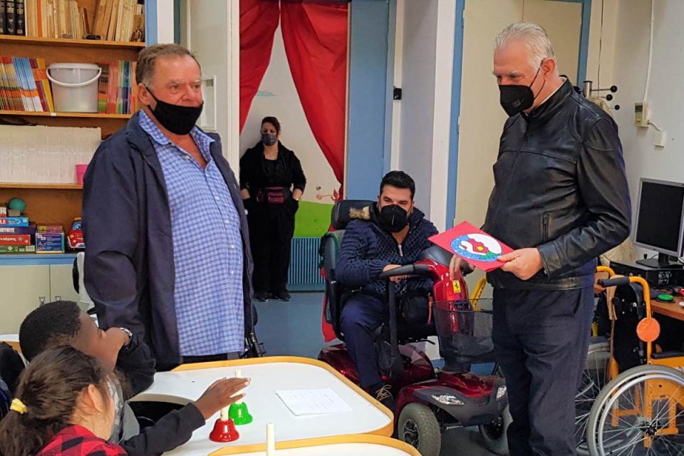 Ο Δήμαρχος Ανδρέας Παχατουρίδης, μαζί με τον υπεύθυνο της περιβαλλοντικής & κοινωνικής δράσης «Ανακυκλώνω καπάκια. Βοηθάω – Κινούμαι» Μπάμπη Δούναβη, βρέθηκαν στο ειδικό σχολείο και παρέδωσαν τα αναπηρικά αμαξίδια στον Διευθυντή Χρήστο Γιαννόπουλο, ενώ άκουσαν τα κάλαντα από τα παιδιά.