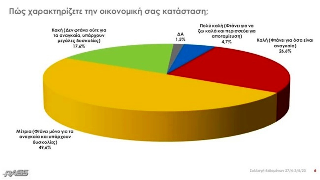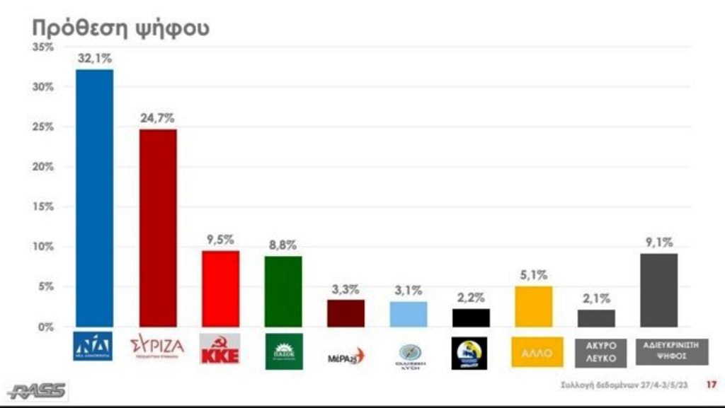 Στην παράσταση νίκης είναι επίσης σαφής η υπεροχή της Νέας Δημοκρατίας, αφού το 76,9% των εκλογέων πιστεύει ότι θα έρθει πρώτο κόμμα.