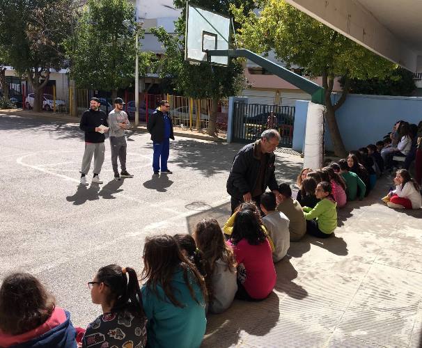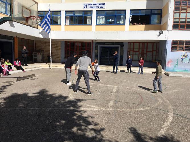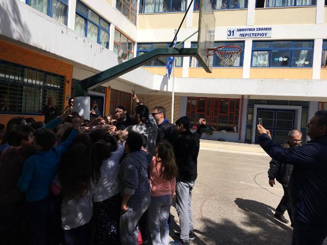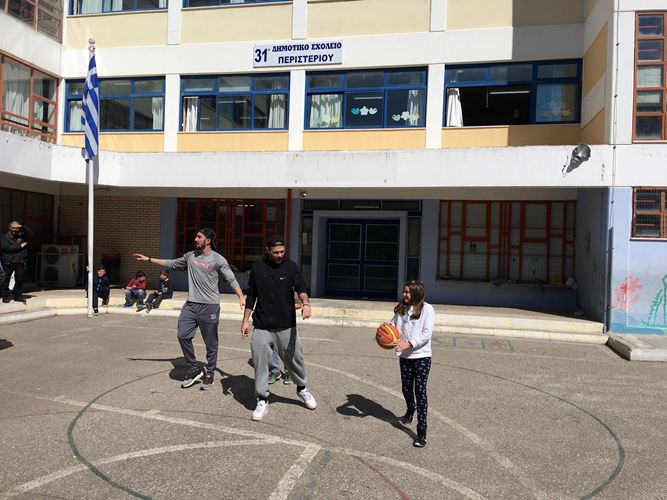 Ο πολυνίκης προπονητής της ομάδας, Νίκος Καραγιάννης και αρχιτέκτονας της φετινής αήττητης πορείας του ΓΣΠ, που έχει γράψει ιστορία με το μοναδικό ρεκόρ των 20 συνεχόμενων νικών, μαζί με τον έμπειρο πλέι μέικερ Άλκη Παππά, τον εκρηκτικό σούτινγκ γκαρντ, Γιώργο Αγγέλου και τον Β’ Αντιπρόεδρο του Συλλόγου κ. Παρδακίδη Γιώργο επισκέφτηκαν το 31o Δημοτικό σχολείο Περιστερίου.