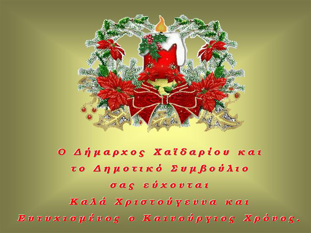 Ο Δήμαρχος Χαϊδαρίου και το Δημοτικό Συμβούλιο σας εύχονται Καλά Χριστούγεννα και Ευτυχισμένος ο Καινούργιος Χρόνος!