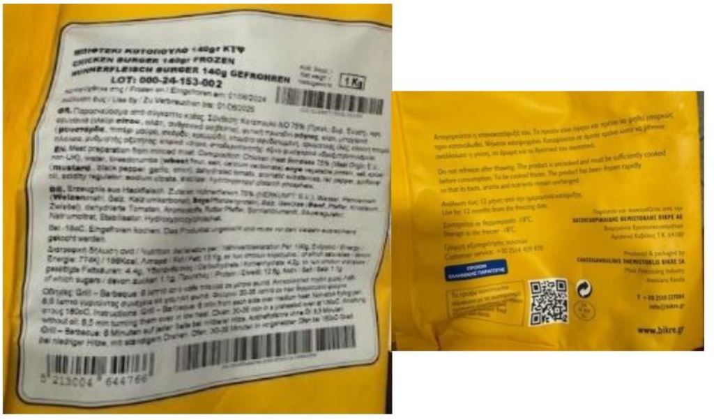 Ο Ε.Φ.Ε.Τ. και ειδικότερα η Περιφερειακή Διεύθυνση Κεντρικής Μακεδονίας, κατά τη διενέργεια ελέγχων στο πλαίσιο του Προγράμματος «Επίσημος Έλεγχος Μικροβιολογικών Κριτηρίων Ασφάλειας Τροφίμων» έτους 2024, προέβη σε δειγματοληψία κατεψυγμένων παρασκευασμάτων κρέατος με τα στοιχεία: ΜΠΙΦΤΕΚΙ ΚΟΤΟΠΟΥΛΟ ΚΑΤΕΨΥΓΜΕΝΟ ΒΙ.ΚΡΕ., καθαρού βάρους 1Kg, με ημερομηνία ανάλωσης 01/06/2025 και ημερομηνία κατάψυξης 01/06/2024 και αριθμό παρτίδας/LOT: 000-24-153-002 που παράγεται από την εταιρεία με διακριτικό τίτλο «ΧΑΤΖΗΓΑΒΡΙΗΛΙΔΗΣ ΘΕΜΙΣΤΟΚΛΗΣ ΒΙ.ΚΡΕ. Α.Ε.».