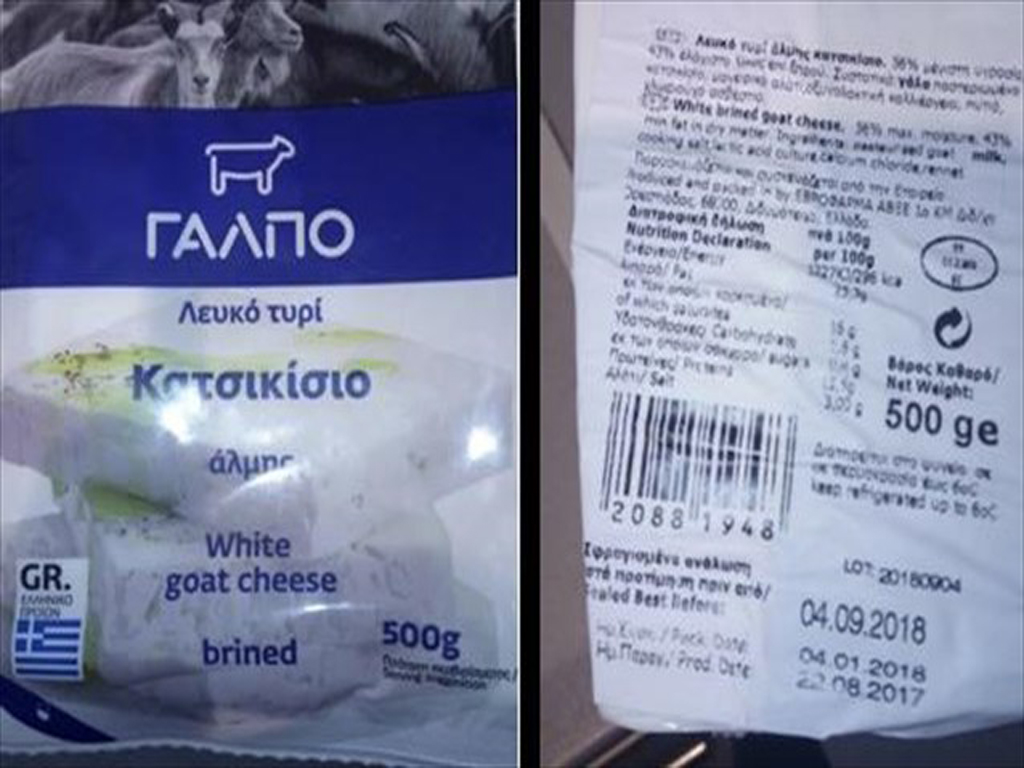 Μετά από διερεύνησης καταγγελίας ο ΕΦΕΤ διαπίστωσε την εμπορία συσκευασμένου κατσικίσιου τυριού και τυριού φέτας, σε λευκές πλαστικές συσκευασίες των 500 γραμμαρίων σε συνθήκες κενού αέρος, vacuum, με αλλοιώσεις των οργανοληπτικών χαρακτηριστικών τους, γλοιώδους υφής, δυσοσμίας και ανάπτυξη μυκήτων.