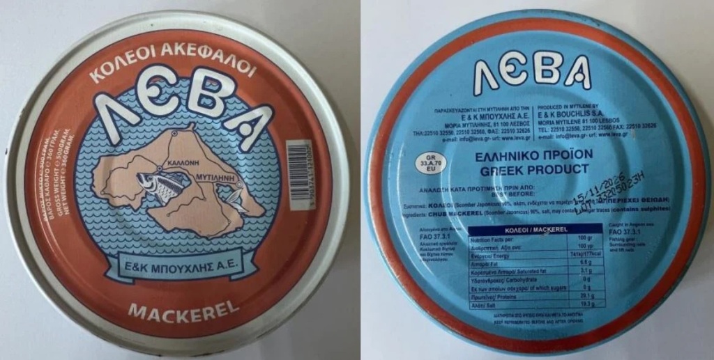 Πρόκειται για προϊόν με ημερομηνία ελάχιστης διατηρησιμότητας 15/11/2026, αριθμό παρτίδας 33205023H, σε λευκοσιδηρή συσκευασία καθαρού βάρους 360 γρ., μεικτού βάρους 500 γρ., που παρασκευάζεται από την εταιρεία «Ε. & Κ. ΜΠΟΥΧΛΗΣ ΑΕ» με έδρα στη Μόρια Λέσβου.
