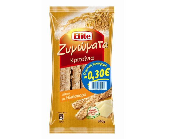 Πρόκειται για το προϊόν «Elite – Ζυμώματα Κριτσίνια Σίτου με Ηλιόσπορο», σε συσκευασία των 340 g, με τα εξής στοιχεία :