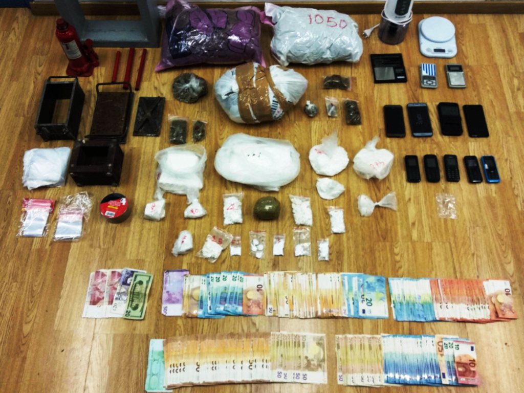 Στην κατοχή, καθώς και από την έρευνα στα σπίτια και τα οχήματα των μελών του κυκλώματος, βρέθηκαν και κατασχέθηκαν δύο κιλά και 743 γραμμάρια κοκαΐνης, τρία κιλά και 434 γραμμάρια ακατέργαστου χασίς, 14.050 ευρώ, εξοπλισμός εργαστηρίου ναρκωτικών, τέσσερις ζυγαριές ακριβείας, εννέα κινητά τηλέφωνα, καθώς και τρία αυτοκίνητα και μία μοτοσυκλέτα.