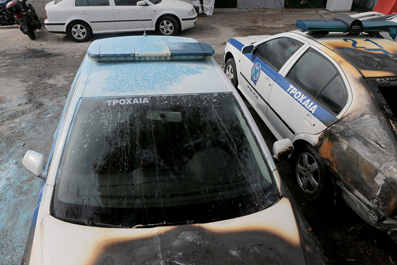 Σύμφωνα με την αστυνομία, οι άγνωστοι με αυτή τους την πράξη κατάφεραν και προκάλεσαν φθορές σε τρία περιπολικά, τα δύο κάηκαν στο μπροστινό τμήμα τους, ενώ το τρίτο στο πίσω.