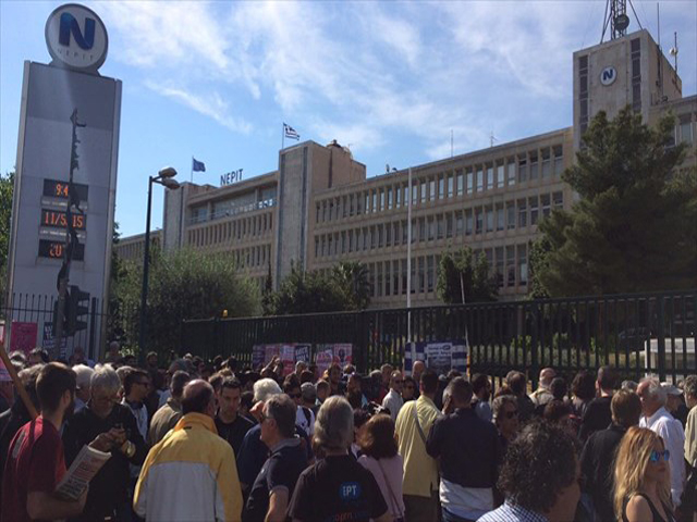 Συγκέντρωση έξω από το ραδιομέγαρο της Αγίας Παρασκευής πραγματοποιούν εργαζόμενοι της ΕΡΤ, που ανταποκρίθηκαν στο κάλεσμα της ΠΟΣΠΕΡΤ, η οποία τους προτρέπει να μπουν στο κτήριο και να επιστρέψουν στις θέσεις τους.