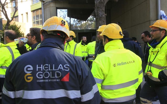 Οι εργαζόμενοι διαμαρτύρονται για τις καθυστερήσεις από την πλευρά της κυβέρνησης στην έκδοση αδειών για τα μεταλλεία στη Χαλκιδική.