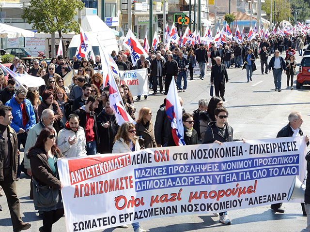 (…) «Δεν αρκεί να αγανακτούμε – ούτε να δεχόμαστε να ζούμε με τη ζητιανιά και τα προγράμματα των ΜΚΟ που προωθούνται συστηματικά από πολλές τοπικές διοικήσεις που ακολουθούν ανάλογη πολιτική σε δήμους και περιφέρειες. Χρειάζεται να παλέψουμε οργανωμένα, με συντονισμό μέσα από τα σωματεία και τις Λαϊκές Επιτροπές για να κερδίσουμε το δίκιο μας. Να αγωνιστούμε μαζί στο μόνο αποτελεσματικό αγώνα, εκείνον που στοχεύει στην κατάργηση της επιχειρηματικής δράσης στην υγεία και την κατάργηση κάθε είδους πληρωμής».