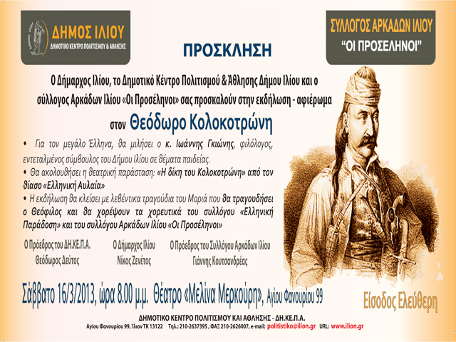 Εκδήλωση- αφιέρωμα στον Θεόδωρο Κολοκοτρώνη