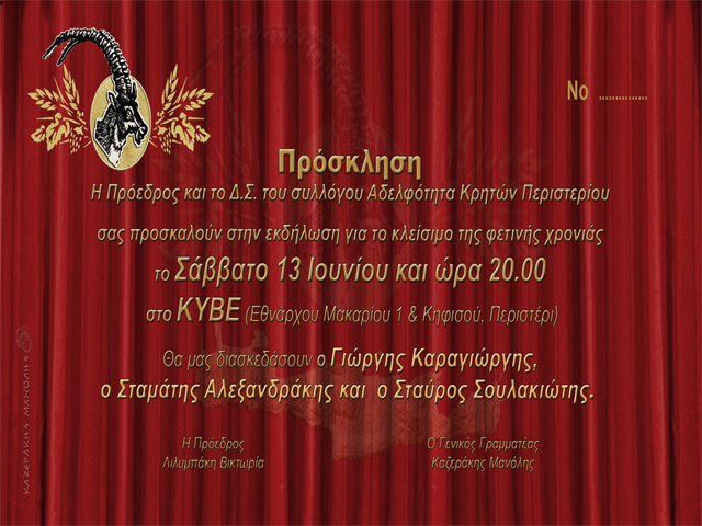 Το Σάββατο 13 Ιουνίου και ώρα 20.00 στο ΚΥΒΕ Περιστερίου.