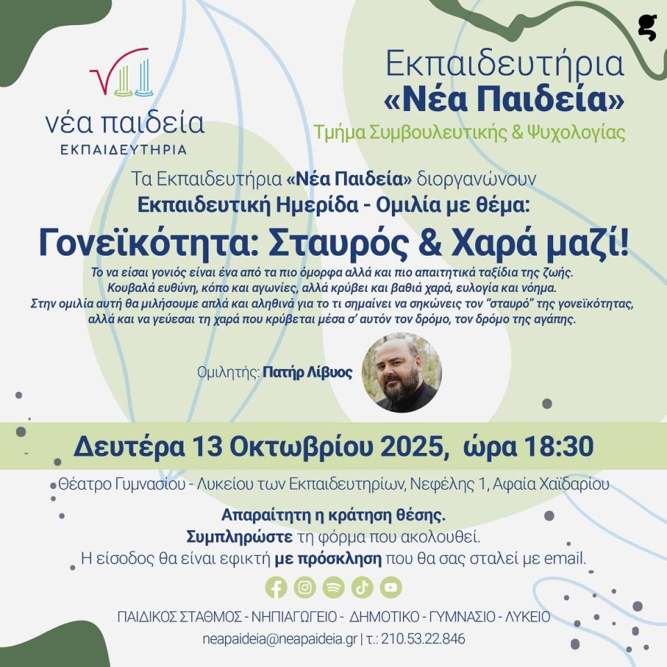 Εκδήλωση της Σχολής Γονέων των Εκπαιδευτηρίων «Νέα Παιδεία» με τον πατήρ Λίβυο