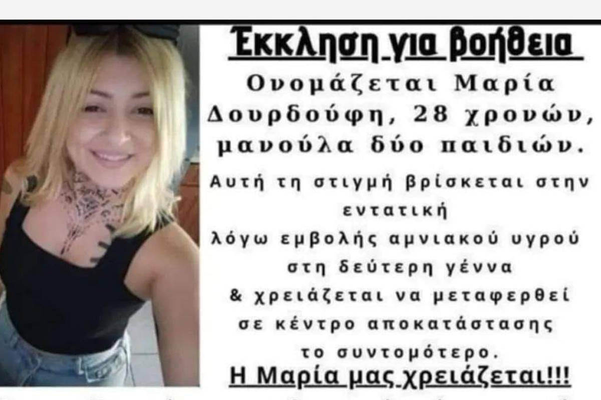 Η 28χρονη Μαρία Δουρδούφη βρίσκεται στην εντατική σε κρίσιμη κατάσταση λόγω εμβολής αμνιακού υγρού στη δεύτερη γέννα της.