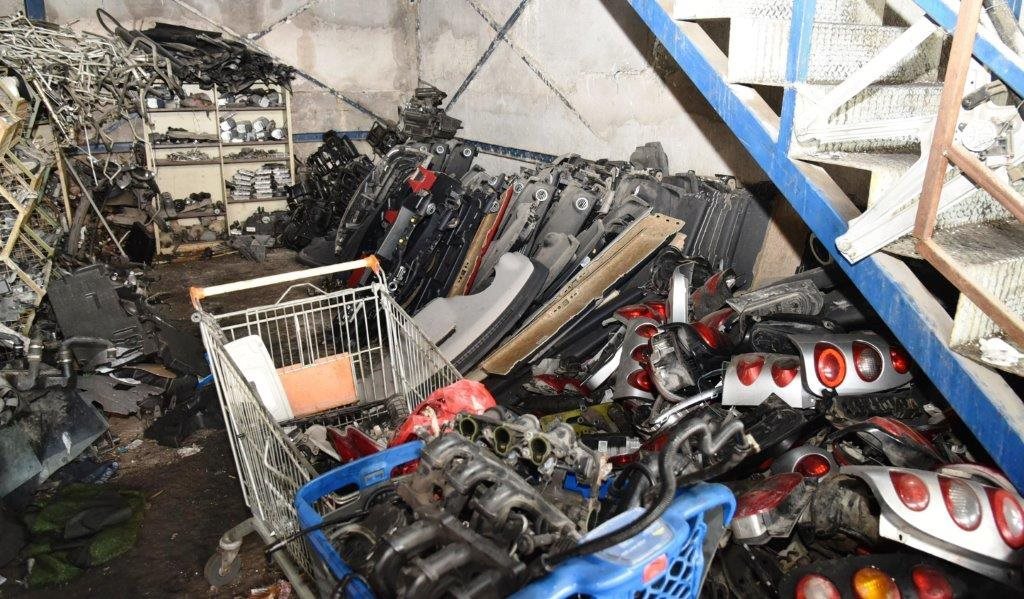 Από τη έρευνα, τόσο στον εσωτερικό, όσο και στον εξωτερικό χώρο της μάντρας, βρέθηκαν και κατασχέθηκαν τρακαρισμένα αυτοκίνητα, αμαξώματα και εξαρτήματα οχημάτων, καθώς και πλήθος εργαλείων πρόσφορων για την αποσυναρμολόγηση των οχημάτων.