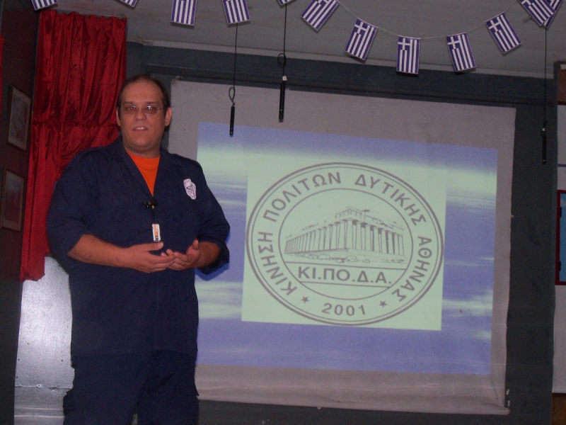 Ο Επικεφαλής της Εθελοντικής Ομάδας Υποβοήθησης Αρχών της Μ.Κ.Ο. «ΚΙ.ΠΟ.Δ.Α. » Παναγιώτης Μαργαρώνης, παρουσίασε ένα προσαρμοσμένο για μαθητές σεμινάριο, με θέμα την ασφάλεια των μαθητών σε περίπτωση πυρκαγιάς και σεισμού, την διαδικασία εκκένωσης ενός κτιρίου όπως το σχολείο τους, αλλά και τρόπους σωστής και ασφαλούς μετακίνησης στους δρόμους.