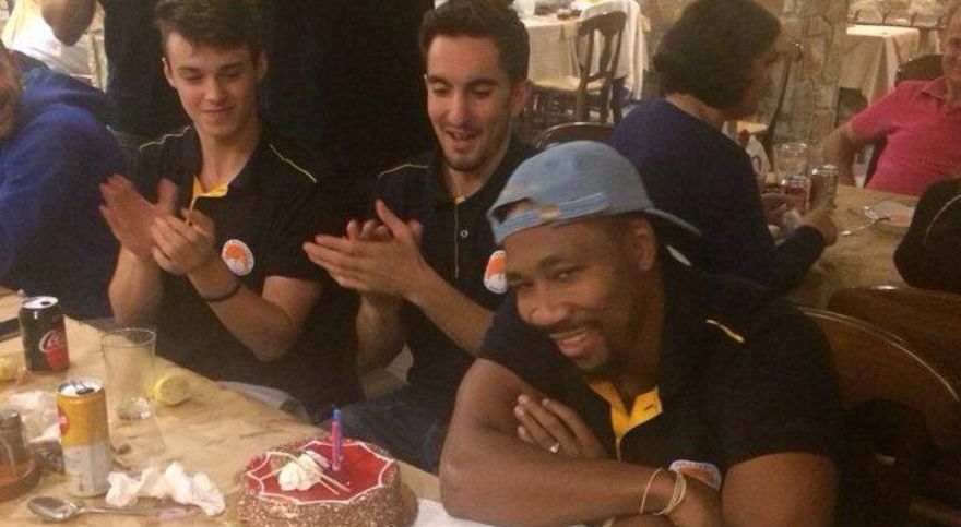 Ο Αμερικανός «μπόμπερ» έχει σήμερα γενέθλια κλείνοντας τα 33 του χρόνια και η οικογένεια του Περιστερίου δεν τον ξέχασε, αφού στην επιστροφή από τη θεσσαλική πόλη του είχαν ετοιμάσει τούρτα… έκπληξη.