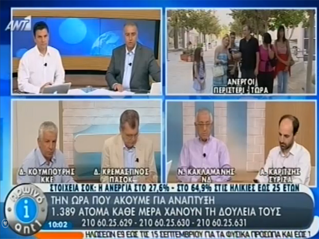Συζήτηση στην εκπομπή «Πρωινό Ant1» με άνεργους του Περιστερίου για την εκτίναξη της ανεργίας σε επίπεδα ρεκόρ.