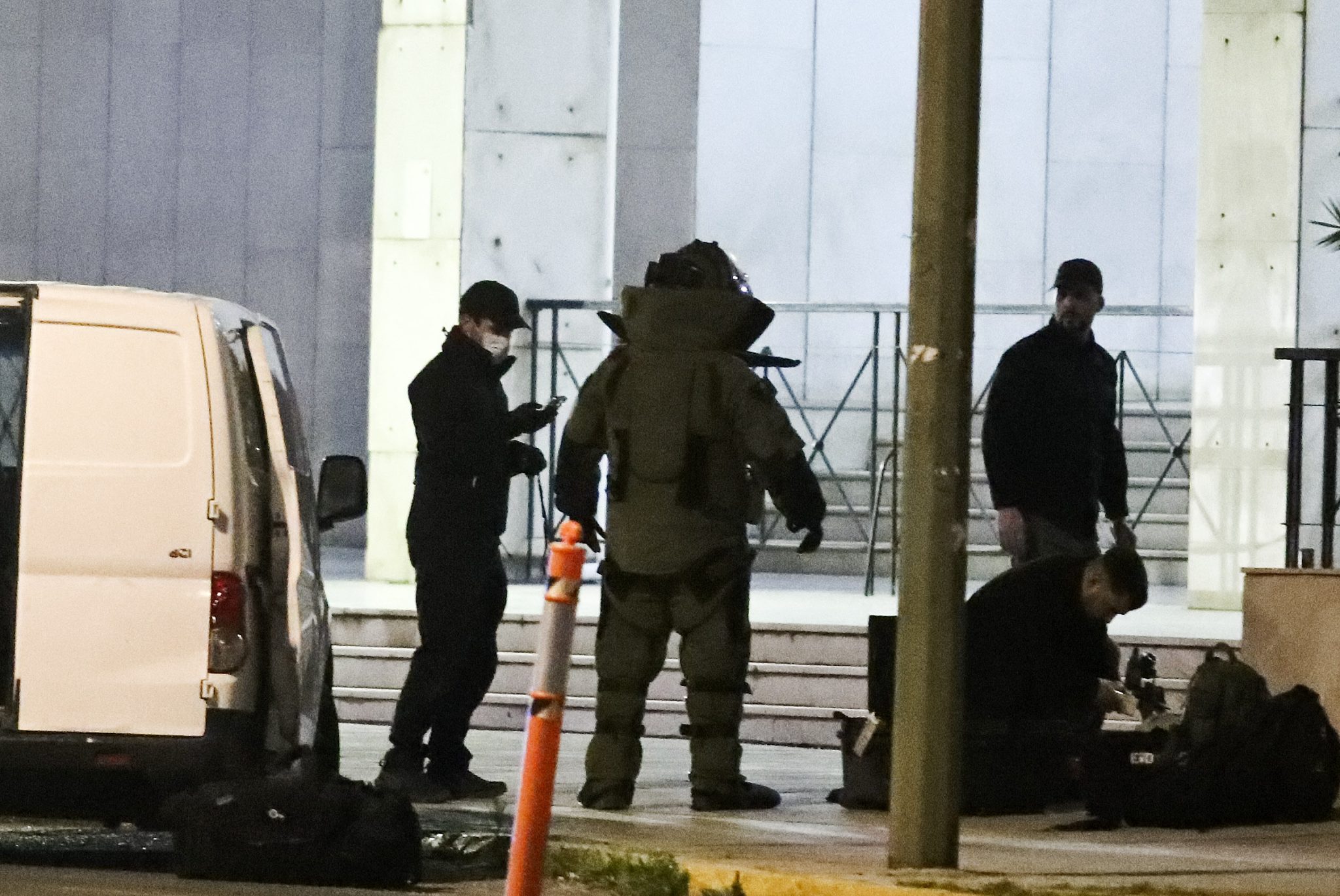 Υπενθυμίζεται ότι ο 48χρονος κρατούσε στο χέρι μια χειροβομβίδα και είχε άλλες δύο σε σακίδιο πλάτης που έφερε μαζί του.