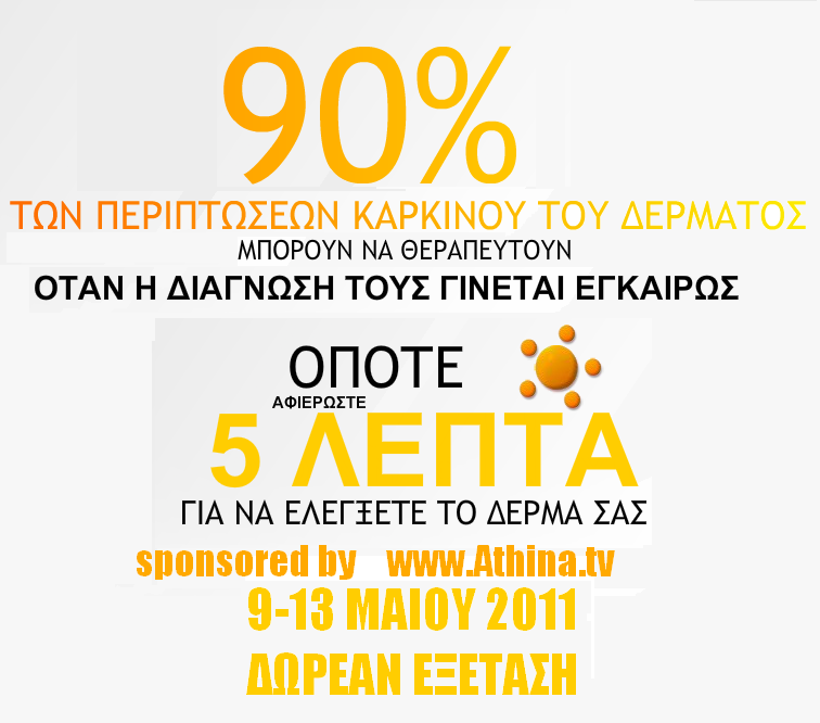 Κατά τη διάρκεια αυτής της εβδομάδας, δερματολόγοι της ΕΔΑΕ σε όλη τη χώρα δέχονται στα ιατρεία τους και σε νοσοκομειακά ιδρύματα το κοινό και εξετάζουν δωρεάν για πιθανό μελάνωμα ή άλλη μορφή καρκίνου του δέρματος.