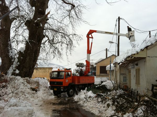 Ο Δήμος από το πρωί με μηχανήματα προσπαθούσε να ανοίξει το δρόμο και τα συνεργεία της ΔΕΗ να αποκαταστήσουν τη βλάβη στο δίκτυο, που είχε αφήσει τα χωριά της περιοχής χωρίς ρεύμα από χθες το βράδυ.