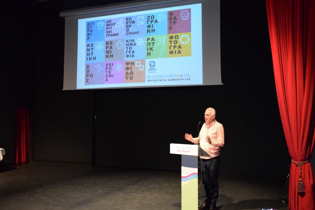 O κ. Παχατουρίδης έδωσε συγχαρητήρια στους εξαίρετους εκπαιδευτές όλων των εργαστηρίων, ιδιαίτερα τον αιώνιο έφηβο, χορευτή, Φώτη Μεταξόπουλο, που πλαισιώνει τα τμήματα χορού, με τις γνώσεις και την εμπειρία του, εδώ και 22 χρόνια!