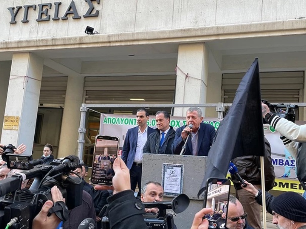 Ένταση επικράτησε στη συγκέντρωση που πραγματοποιείται έξω από το υπουργείο Υγείας, όταν ο Άδωνις Γεωργιάδης κατέβηκε το πρωί της Πέμπτης για να μιλήσει με τους διαδηλωτές.