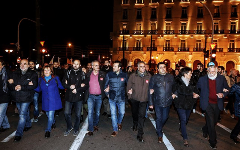 Στο μπλοκ του κυβερνώντος κόμματος συμμετείχαν ο υπουργός Ψηφιακής Πολιτικής, Νίκος Παππάς, ο αναπληρωτής υπουργός Άμυνας, Πάνος Ρήγας, ο γραμματέας του κόμματος, Πάνος Σκουρλέτης και η βουλευτής, Αννέτα Καββαδία.