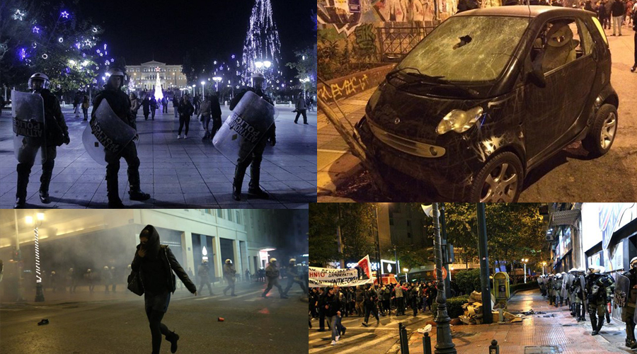 Ένταση στη δεύτερη πορεία για την επέτειο από τη δολοφονία του Αλέξη Γρηγορόπουλου, στο κέντρο της Αθήνας.