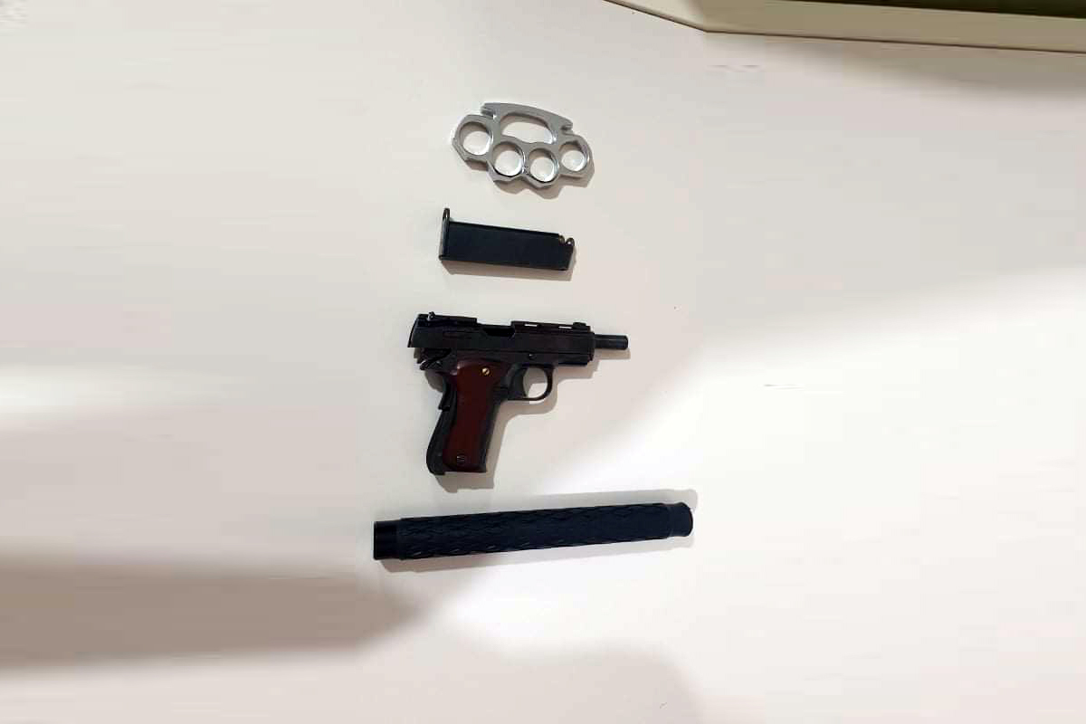 Έπειτα από έλεγχο στο Ι.Χ. που επέβαιναν οι δύο άνδρες βρέθηκε πιστόλι με γεμιστήρα και 4 φυσίγγια διαμετρήματος 7,62 όπως επίσης και μια σιδερογροθιά.