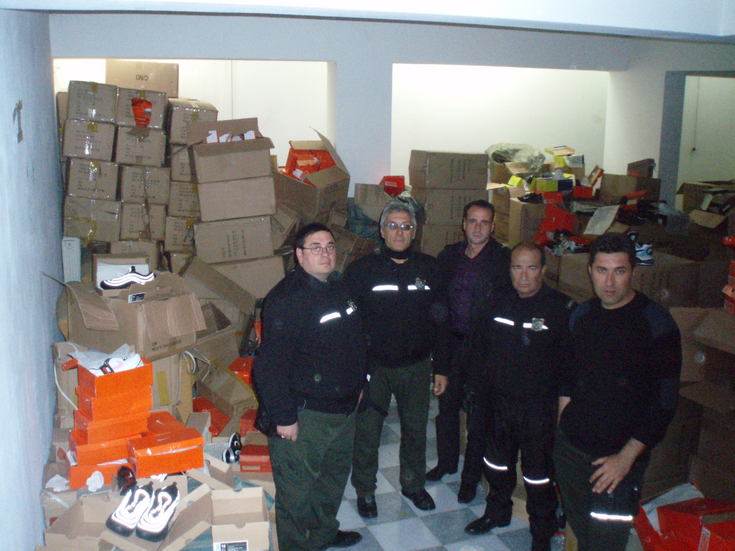 Μικτά κλιμάκια της Ελληνικής Αστυνομίας, της Δημοτικής Αστυνομίας Περιστερίου και του Σώματος Δίωξης Οικονομικού Εγκλήματος (Σ.Δ.Ο.Ε.) εντόπισαν στην οδό Σκρα 18 στο Περιστέρι, σε υπόγειο χώρο 250 τετραγωνικών μέτρων, αποθήκη με περισσότερα από 10.000 παπούτσια (απομιμήσεις γνωστών αθλητικών εταιριών).